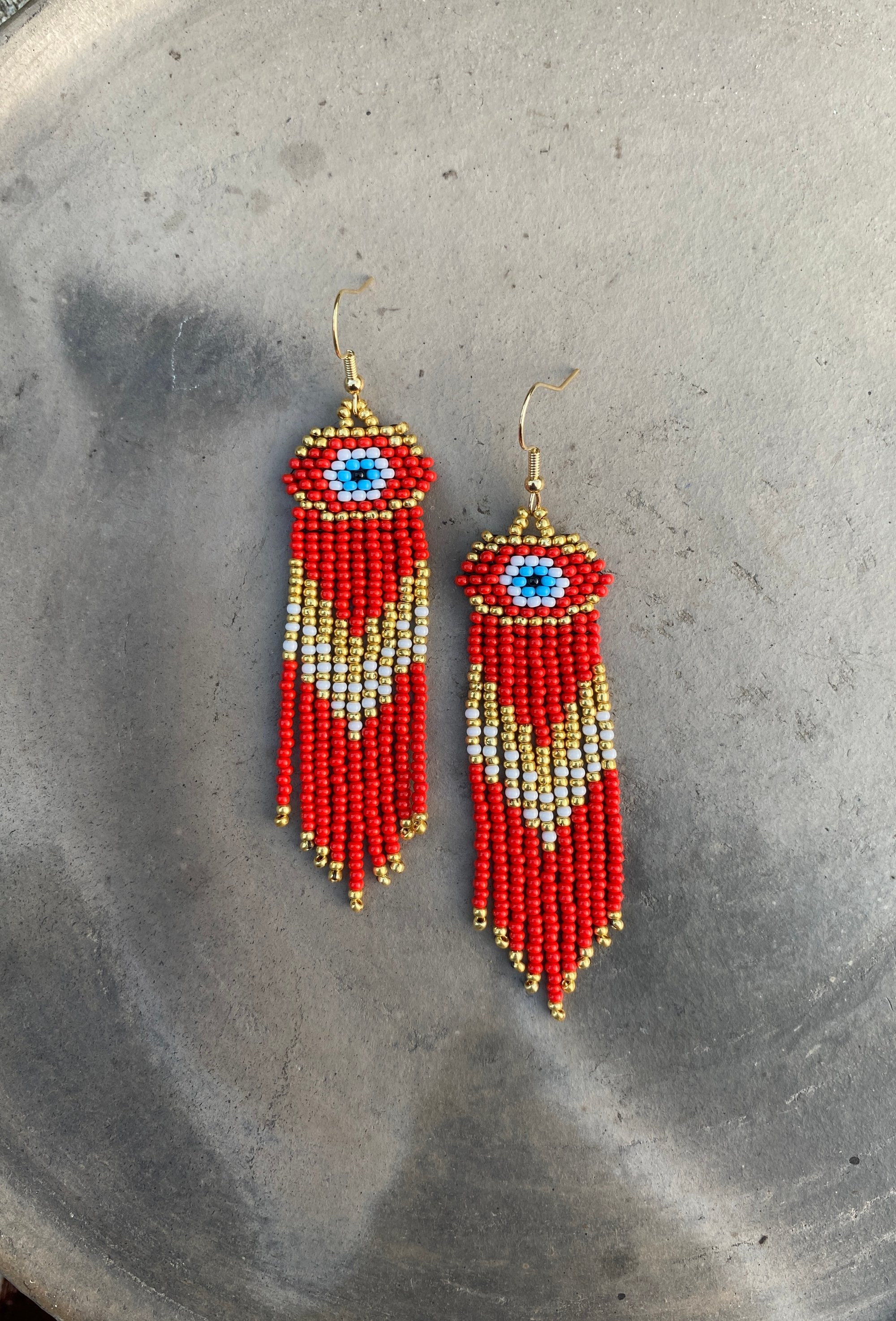 These earrings are great for everyday protection from the "Mal De Ojo" and measure at almost 3in in length.